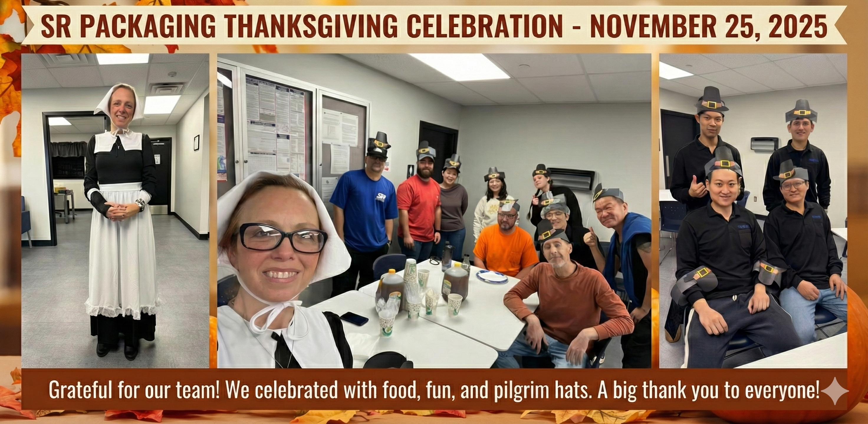 Cara Winslow :「今天我們一起慶祝了感恩節,享用了火雞、馬鈴薯、蔓越莓醬和派!Marissa 親手製作了清教徒帽子(Blake 超級喜歡他的帽子!),我也特地變裝成清教徒同樂。我向團隊表達了對他們的感謝,並為我們目前所取得的進展感到無比自豪。」